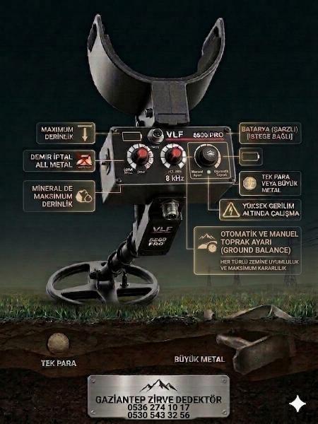 -VLF SINIFI SÜREKLİ ZEMİN SESLİ DERİN DEDEKTÖR İSTENİLDİĞİNDE -ZEMİN SESİ KAPATILARAKTA KULLANILIR.