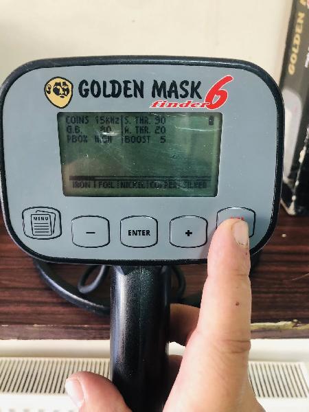 Bu modelde Golden Mask ilk kez kullanıcı tarafından değiştirilebilir ön ayarlara sahip gerçek bir menü sistemi uygulamaktadır. Bu şekilde, yalnızca iki düğme tıklamasıyla örneğin "madeni paralardan” "kalıntılara” hızlı bir şekilde geçebilirsiniz. Ön ayarları değiştirebilirsiniz (menüde "programlar” olarak adlandırılır) ve ayarlarla uğraşıyorsanız, hızlı bir şekilde fabrika değerlerine dönme seçeneğiniz vardır. Golden Mask 6, önceki modelle aynı teleskopik mili kullanır. Golden Mask 6‘nın kontrol bloğu yağmura dayanıklıdır – suya daldıramazsınız, ancak dedektörü yağmur altında kullanmaya devam edebilirsiniz.